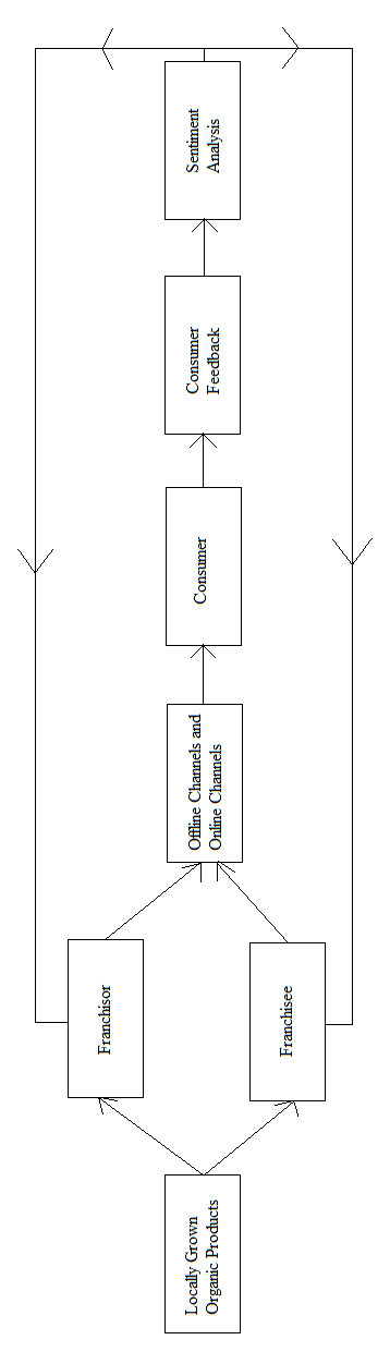 The proposed model “Consumer and business centric freshness-expansion model” is shown below in Figure 1. Initially, locally grown organic products are sourced from farmers by the Franchisor and Franchisees followed by selling the locally sourced organic products to consumers through offline and online modes such as retail outlets, mobile applications,websites, social media applications etc. Consumers are requested to give feedback and sentiment analysis is done in real-time on this feedback. The results of sentiment analysis are shared in real-time to the franchisor and franchisees to ensure sustainability of this business model.