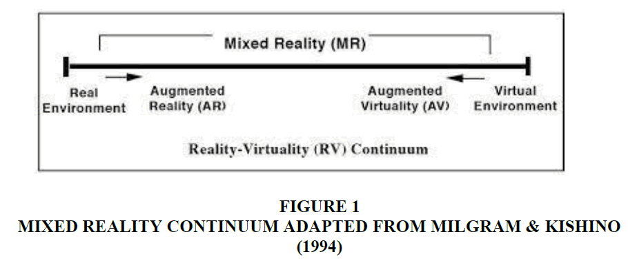 Sometimes the terms augmented reality (AR) and virtual reality—or virtual environment, as Milgram and Kishino (1994) called it—are used interchangeably. Both of them are a part of the current digital technology trend known as "mixed reality," which is defined as the blending and integration of the real and virtual worlds where real and virtual objects interact, support, and complement one another Du et al., (2022). While AR and virtual reality (VR) are related, VR technology completely immerses users in a synthetic environment while AR technology enhances a user's interaction with reality through a computer-generated environment. Users of AR can continue to see and hear the outside world while also experiencing new sights and sounds that are precisely timed to the user's three-dimensional (3D) orientation to a particular geographic area. As a component of mixed reality, augmented reality (AR) concentrates on adding digital information to the actual world rather than incorporating it into virtual ones (Figure 1) (Azuma, 1997). As a result, rather than producing a fully fake environment in which users shut themselves out and can lose their sense of time and place, augmented reality (AR) seeks to enhance the real world Heller et al., (2019). As a component of mixed reality, augmented reality (AR) concentrates on adding digital information to the actual world rather than incorporating it into virtual ones (Figure 1) (Azuma, 1997). As a result, rather than producing a fully fake environment in which users shut themselves out and can lose their sense of time and place, augmented reality (AR) seeks to enhance the real world Haile & Kang, (2020).
