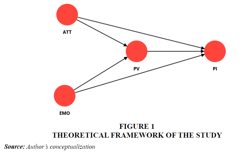 Meanwhile, emotional responses may increase experiential appeal and desirability, while influencing interpretation of benefits (Dwivedi et al, 2019). Hence, perceived value is placed as quick mechanism of evaluation with which affective intensity and salience are combined into assessing worth. Modern models based on value constantly understand this addition of emotional and cognitive asspects in redefining behavioral intent (Konuk, 2019; Iglesias et al, 2019). Figure 1 illustrates the specifics of structural model on both direct impacts of “emotional response (EMO) and attentional response (ATT)” on “purchase intention (PI)”, along with indirect paths with “perceived value (PV)”. The framework reflects the chance that affective and cognitive systems impact behavioral preparedness at the same time and with evaluating change Sweeney & Soutar, (2001).