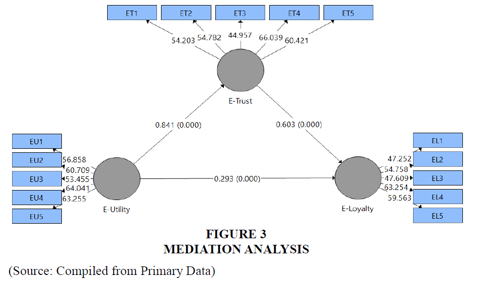 | E-Utility àE-Trust à E-Loyalty | Indirect Effect | 0.507 | 12.80** | 0 | Significant Mediation of E-Trust exists between E-Utility and E-Loyalty. |
