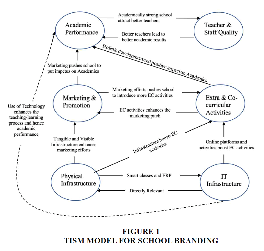 This study contributes to understanding school branding in the Indian K-12 education context by systematically identifying the key factors that shape a school’s brand and elucidating their interrelationships through a TISM-based framework. The research demonstrates that a school’s brand is not determined by a single attribute but rather emerges from the combined effect of academic performance, teacher and staff quality, extracurricular engagement, marketing strategies, and physical and technological infrastructure. Academic performance and teacher quality are revealed as the most influential drivers, reinforcing existing literature that positions human capital and learning outcomes at the core of institutional reputation. However, this study also highlights the significant yet often underappreciated role of extracurricular activities in shaping academic performance and, by extension, school branding. Similarly, marketing and promotional efforts, while sometimes viewed as secondary, play an essential role in communicating a school’s achievements and value proposition to the wider community. Infrastructure, both physical and IT-related, serves as a tangible signal of quality and innovation, influencing initial perceptions and sustaining the brand’s competitive positioning.